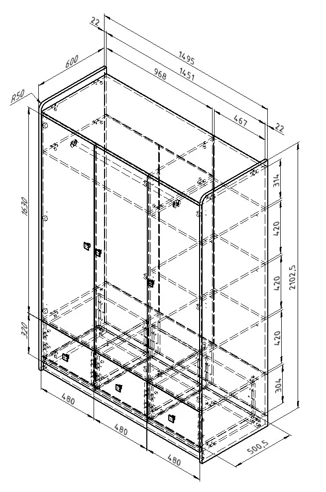 *Размеры (ВхШхГ), мм:2103х1500х600 мм