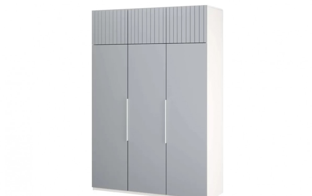Представляем вам стильный трехстворчатый шкаф в сером цвете. Его петли оснащены доводчиком, что делает открытие и закрытие дверей плавными и бесшумными. А еще, для удобства, мы добавили систему открытия верхних фасадов с помощью Push-to-open. Этот шкаф не только прекрасно впишется в любой интерьер, но и обеспечит вас простотой и комфортом в использовании.