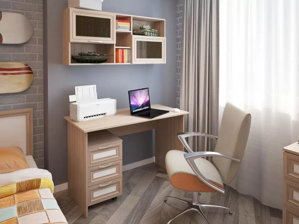 Стол, как прямой типовой, может быть дополнен Тумбой на колесных опорах М19 и Полкой М16, т.к. имеет вместе с последней одинаковую ширину, равную 1200 мм.