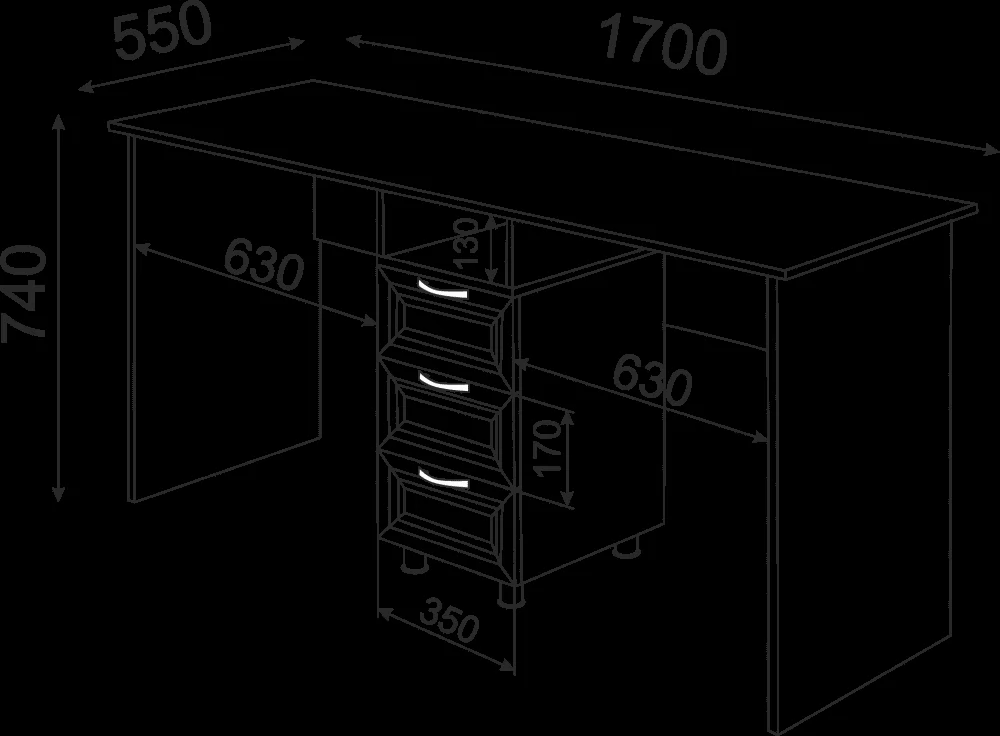 2. Стол разделен тумбой на квадратных опорах высотой 55 мм, серого цвета.