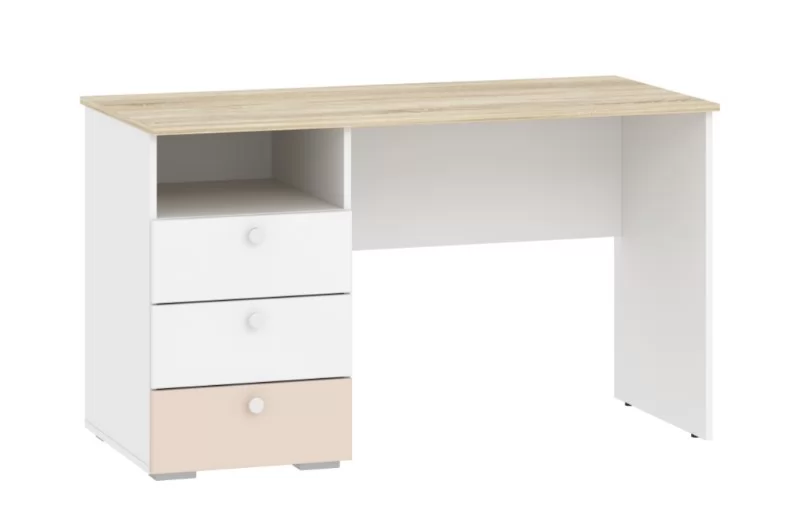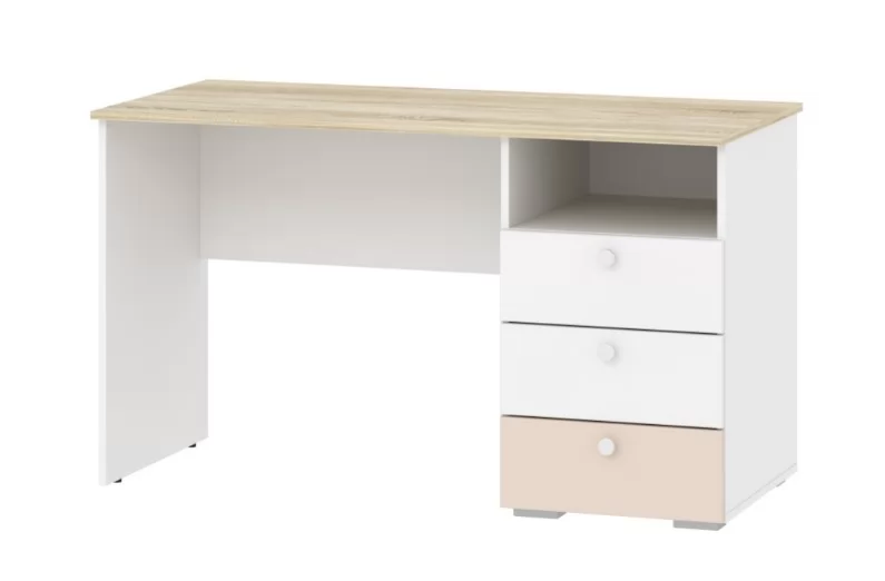 Одним из важнейших принципов развития ребенка является обустройство его рабочего места, где школьник сможет выполнять уроки, заниматься творчеством и любимым хобби. Письменный стол НМ 041.40 «Банни» с тумбой позволит оформить в спальне рабочий уголок в скандинавском стиле. Данная модель дополнена небольшим модулем из трех выдвижных ящиков и открытой ниши. Вместительная полка под рабочей поверхностью прекрасно подходит для книг и тетрадей. Тумбу с ящиками возможно разместить как в левой, так и в правой части изделия в зависимости от предпочтений ребенка. Ящика с удобными ручками легко выдвигаются, предоставляя полный доступ к содержимому и позволяя быстро найти необходимый предмет.