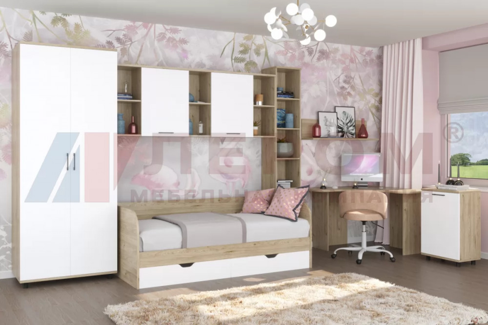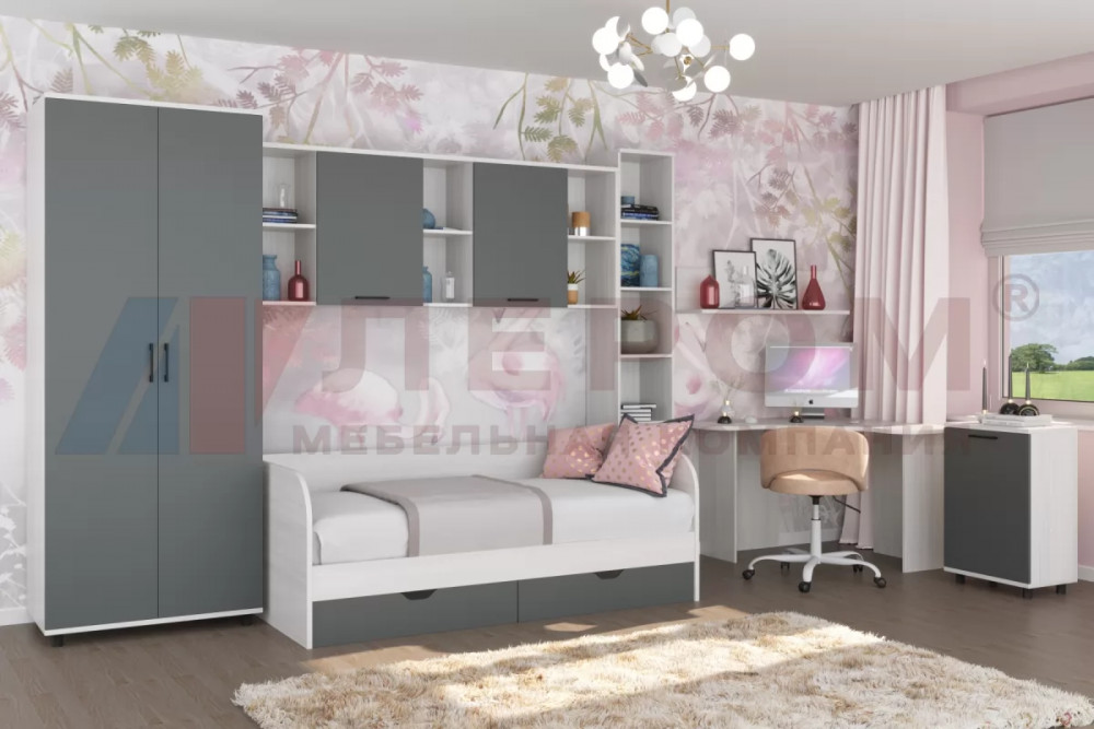 Набор детской мебели «Порто» №3 Белый Жемчуг, Яблоня Беллуно, Белый софт