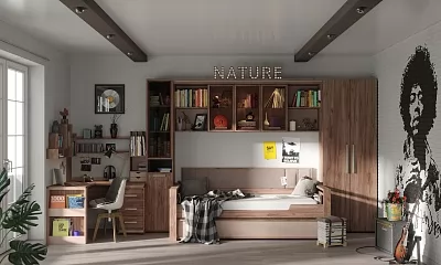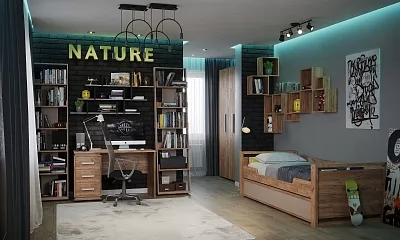 Брутальная коллекция Nature отвечает всем требованиям творческих, молодых и динамичных людей, которые ценят свободу и пространство. Выполненные в современном стиле модули практичны, функциональны, обладают "характером" и стилем.