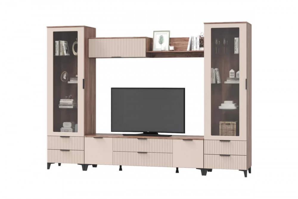 Высота, мм: 2150 Ширина, мм: 3006 Глубина, мм: 446 Вес, кг: 0 Расположение: Симметричное Материал корпуса: ЛДСП Материал фасада: МДФ Цвет корпуса: Коричневый Цвет фасада: Бежевый Цвет корпуса изготовителя: Дуб табачный Цвет фасада изготовителя: Бисквит