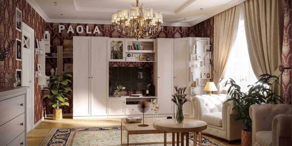 Рельефный профиль МДФ на фасадах и металлические мебельные ручки с эффектом полированного состаренного серебра – украшение коллекции PAOLA. Металлические ручки не сотрутся со временем, а сложный профиль добавит гостиной роскоши и элегантности.