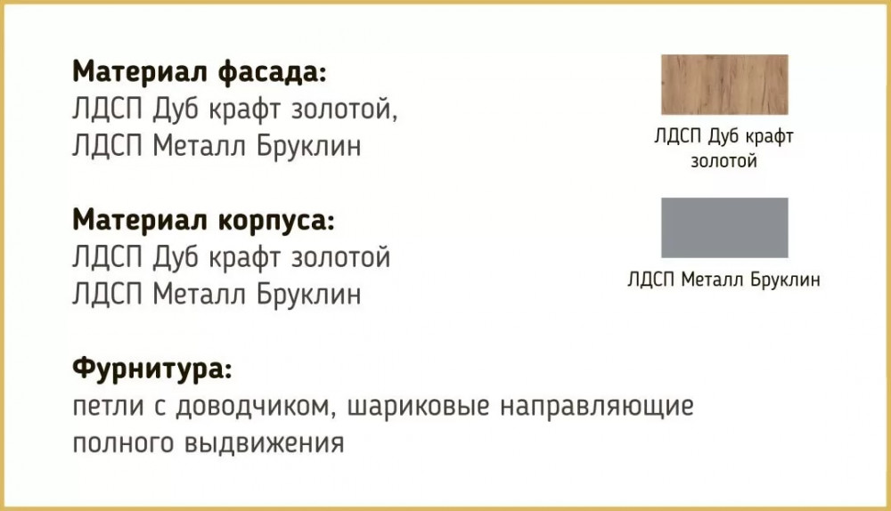 Глубина-426 мм Ширина-958 мм Высота-2004 мм Срок службы-7 лет Гарантийный срок-18 месяцев Монтаж-Требует сборки Фрезеровка фасада-Да Количество стеклянных полок-0 Количество жестких полок-2 шт Материал фасада-ЛДСП 16 мм Материал корпуса-ЛДСП 16 мм Материал полок-ЛДСП, Стекло 4 мм Количество дверей-4 шт Фурнитура-Петли с доводчиком, Светодиодная подсветка для стеклянных полок Коллекция-Гостиная «Римини» Цвет корпуса-Дуб Крафт Золотой, Металл Бруклин Цвет фасада-Дуб Крафт Золотой, Металл Бруклин Фасады с древесной или текстурной поверхностью-Частично Корпус с древесной или текстурной поверхностью-Да Комплектуется-Комплектуется полками из ЛДСП или стекла