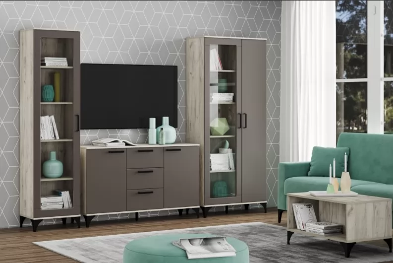 "МАРСЕЛЬ" - оригинальная коллекция мебели, которая сделает ваш интерьер современным и стильным. Благодаря высоким ножкам и длинным ручкам он привнесет в комнату нотку ретро-атмосферы. Теплый оттенок дерева сделает комнату более уютной. Витрина является элементом коллекции, характеризующейся гармоничным сочетанием эффекта дерева с темными и светлыми фасадамии. Мебель из коллекции может быть оформлена в современном стиле, с элементами индустриального и ретро стиля. Это идеальная коллекция для любителей нетривиальных решений в интерьере, она не перегружает, но станет отличным дополнением к оформлению помещения. Шкаф-пенал "Марсель" предназначен для хранения или демонстрации различных вещей и предметов. Изделия универсальной сборки: дверь может крепиться как на левую, так и направую сторону.
