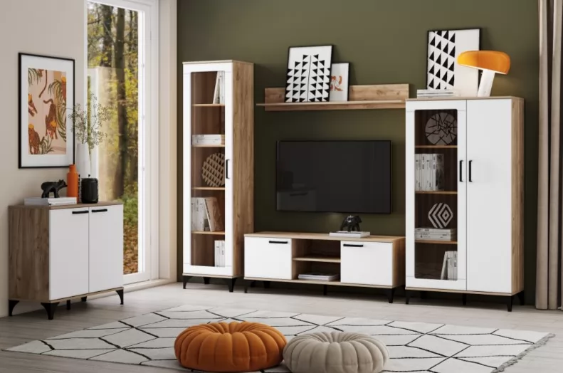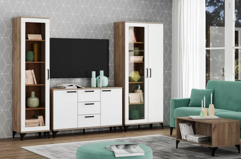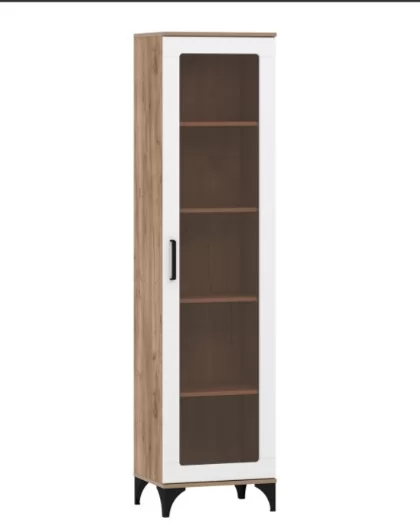 "МАРСЕЛЬ" - оригинальная коллекция мебели, которая сделает ваш интерьер современным и стильным. Благодаря высоким ножкам и длинным ручкам он привнесет в комнату нотку ретро-атмосферы. Теплый оттенок дерева сделает комнату более уютной. Витрина является элементом коллекции, характеризующейся гармоничным сочетанием эффекта дерева с темными и светлыми фасадамии. Мебель из коллекции может быть оформлена в современном стиле, с элементами индустриального и ретро стиля. Это идеальная коллекция для любителей нетривиальных решений в интерьере, она не перегружает, но станет отличным дополнением к оформлению помещения. Шкаф-пенал "Марсель" предназначен для хранения или демонстрации различных вещей и предметов. Изделия универсальной сборки: дверь может крепиться как на левую, так и направую сторону.