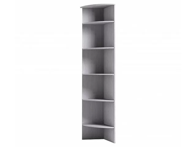 Стеллаж с лекальными полочками гармонично завершит шкафную группу высотой 2107 мм. Из одного комплекта деталей собирается на глубину 400 мм и 590 мм, что делает полку универсальной для любой композиции.