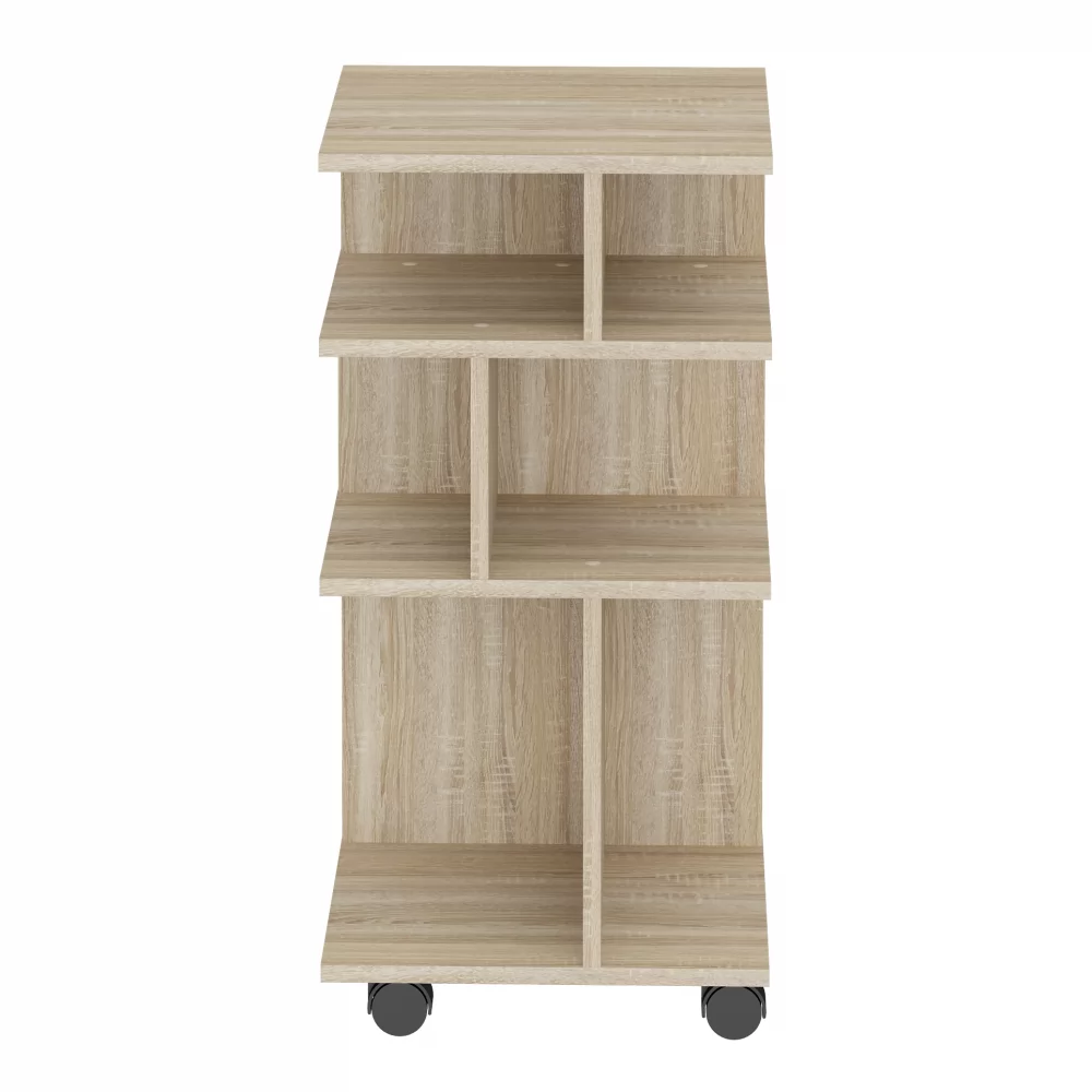 Оригинальная мобильная полка для организации рабочего места - можно перекатить туда, где она нужна, повернуть удобной стороной, а разные размеры полок позволят практично разместить необходимые предметы.