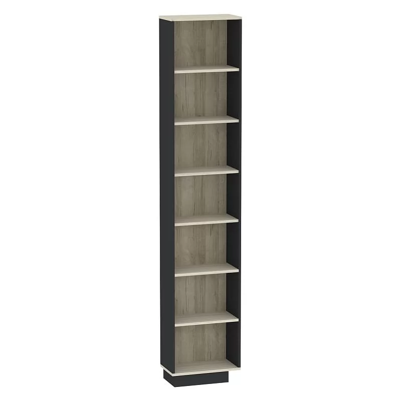 Ширина (мм): 455 Высота (мм): 2308 Глубина(мм): 250 Материал: ЛДСП Цвет: Белый-Блеквуд Сатиновый,Антрацит-Блеквуд Сатиновый Полки регулируемые по высоте