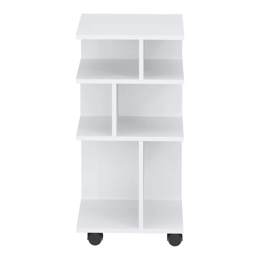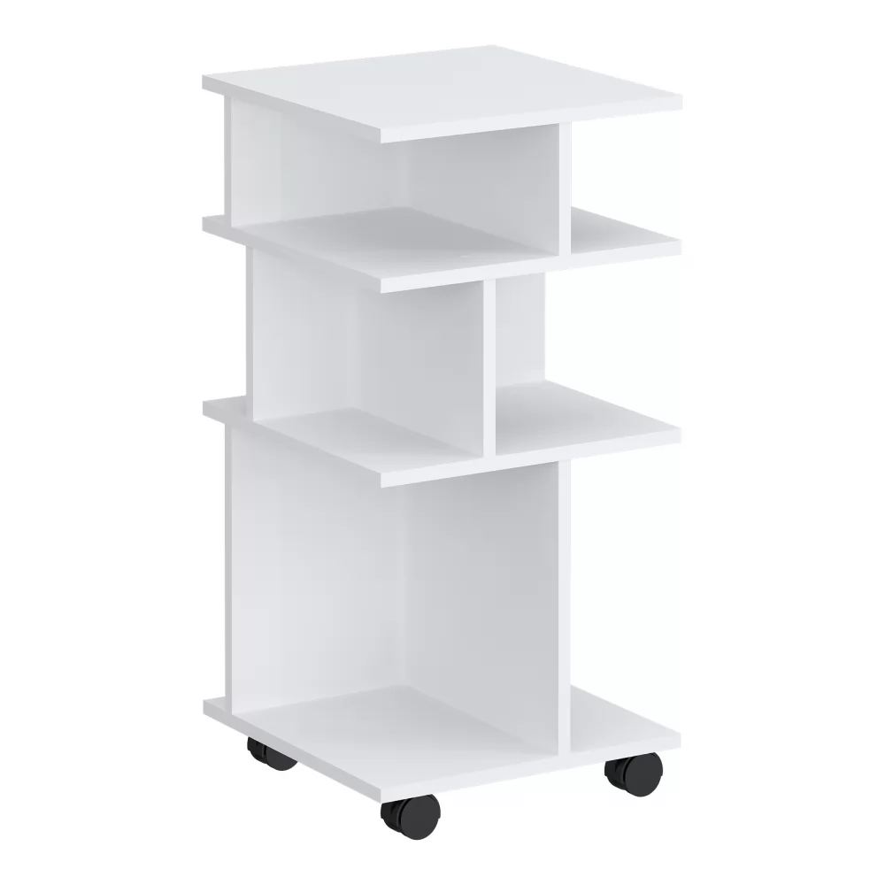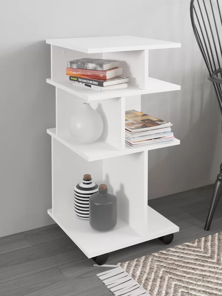 Оригинальная мобильная полка для организации рабочего места - можно перекатить туда, где она нужна, повернуть удобной стороной, а разные размеры полок позволят практично разместить необходимые предметы.