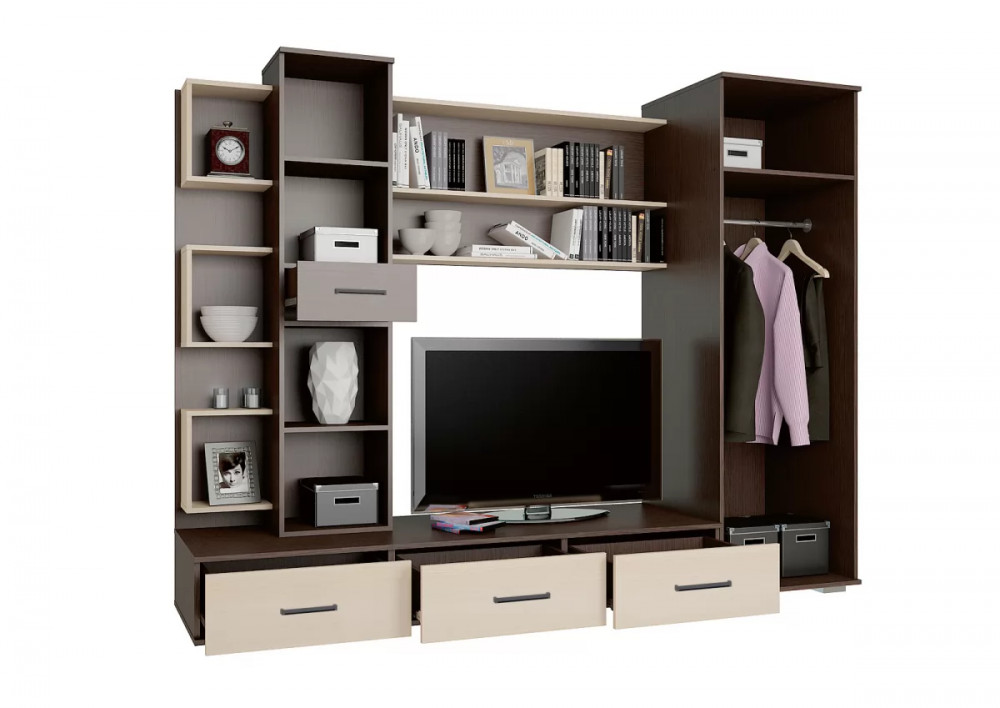 Модульная- нет Габаритные размеры (ШхВхГ), мм: 2400х1862х587 Размеры ниши под ТВ (ВхШхГ), мм: 1124х932 Материал корпуса- ЛДСП Материал фасада- ЛДСП Класс токсичности материалов- Е1 Кромка- ПВХ 0,4 мм Стекло- нет Зеркало- нет Материал ручек- пластик Межцентровое расстояние ручки- 160 мм Опора- регулируемая Тип открытия фасада- распашной Петля- накладная Тип петли- без доводчика Тип направляющих- Роликовые Boyard Глубина ящиков, мм- 300, 400 Максимальная нагрузка на ящик, кг: до 5 Максимальная нагрузка на деревянную полку, кг: 5 Ориентация сборки- левое/правое Количество пакетов - 6 Общий вес - до 152кг Общая кубатура - до 0,25 Гарантийный срок эксплуатации- 24 мес Срок службы изделия- 10 лет