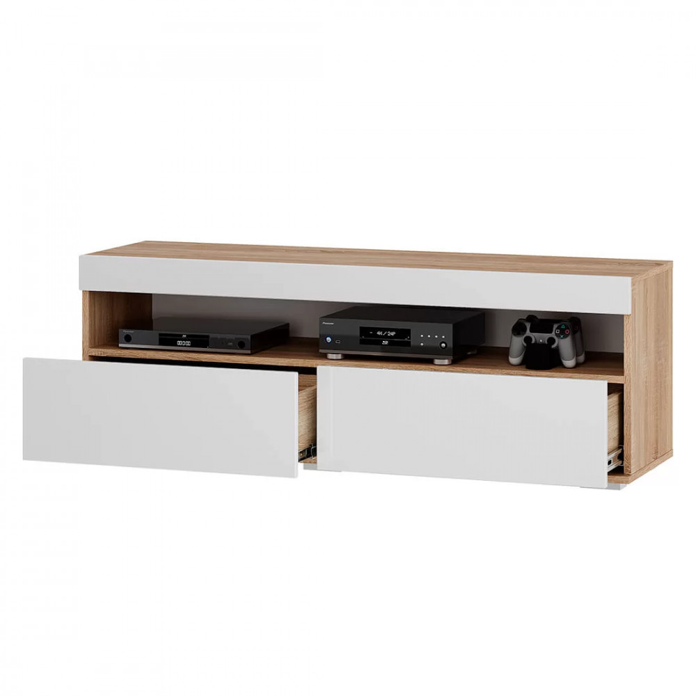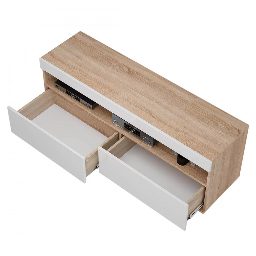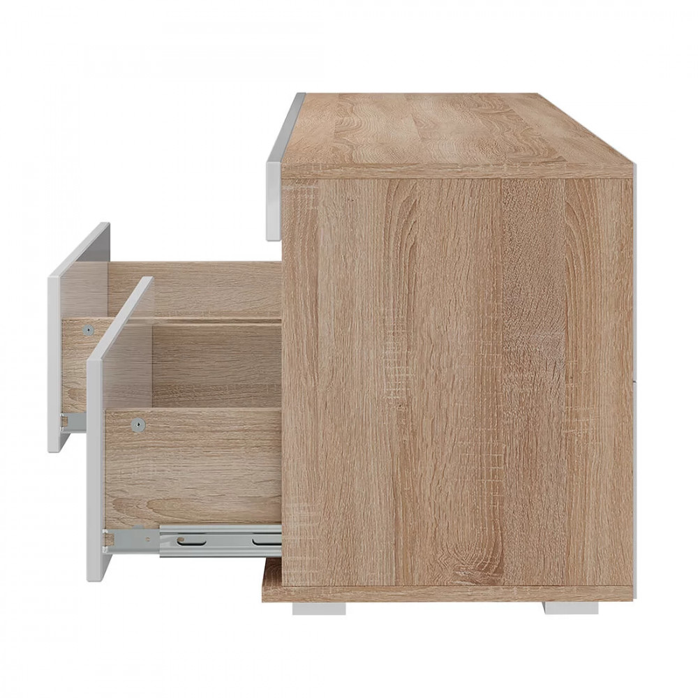 Практичное и функциональное решение для Вашей гостиной или спальни в современном стиле. Сочетание белого фасада и корпуса цвета дуб сонома, отсутствие лицевой фурнитуры делают модель лёгкой, а интерьер уютным и свежим. Верхняя открытая полка прекрасно подойдёт для хранения медиа техники. Вместительные выдвижные ящики на шариковых направляющих выдерживают нагрузку до 10 кг, обеспечивают легкую и бесшумную эксплуатацию. Благодаря регулируемым опорам тумбу можно устанавливать даже на неровную поверхность. Лучший выбор — это Тумба под ТВ Белладжио ТБ-29 в компании «Семья Мебелони».