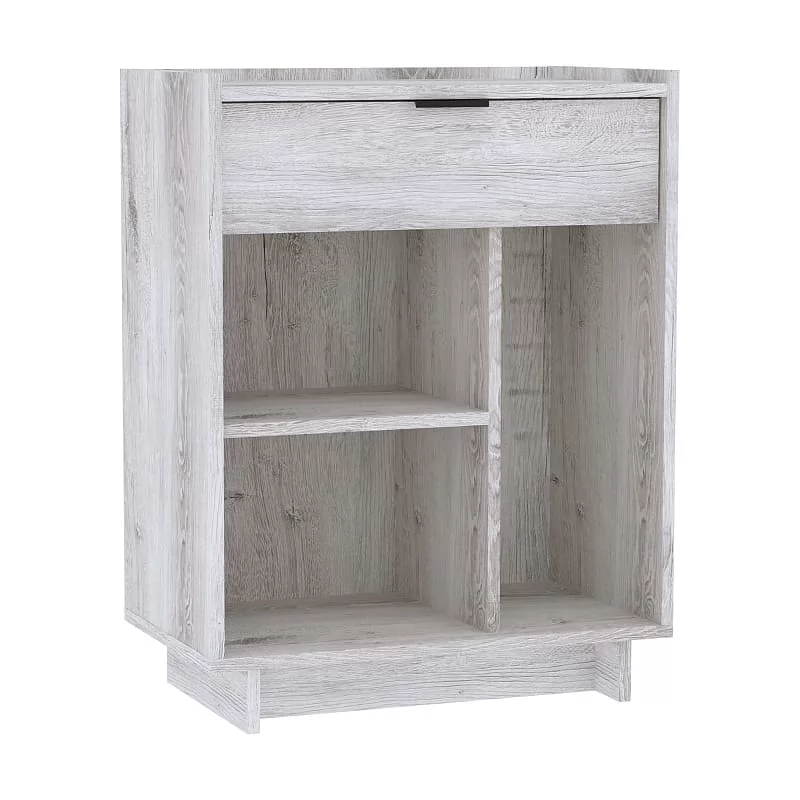 Тумба с ящиком ФЛЕКС 27 в светлом цвете Дуб Шавиниган выполнена из ЛДСП класса эмиссии Е1 толщиной 16 мм. Напольная тумба с выдвижным ящиком на шариковых направляющих и открытыми нишами разного размера. Бортики по краям столешницы предотвратят падение предметов. Предусмотрена универсальная сборка тумбы.
