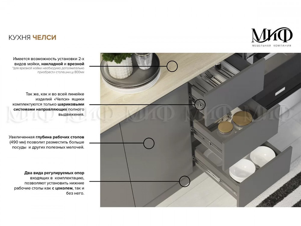 Кухня Челси 2,0м Графит/Графит в Ишиме