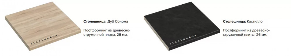 Столешница: Дуб Сонома или Кастилло , Постформинг из древесностружечной плиты, 26 мм,