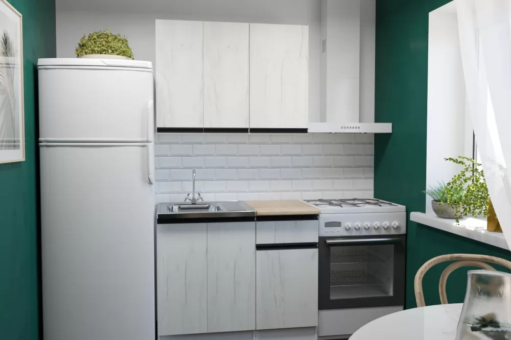 Прямые готовые кухни рациональны для маленьких квартир. При прямой планировке кухни важно предусмотреть место для холодильника и учесть его габариты. Если ваша кухня объединена с гостиной, или же настолько просторная, что позволяет сделать полноценную обеденную зону для большой семьи, то смело выбирайте линейную конфигурацию кухни.