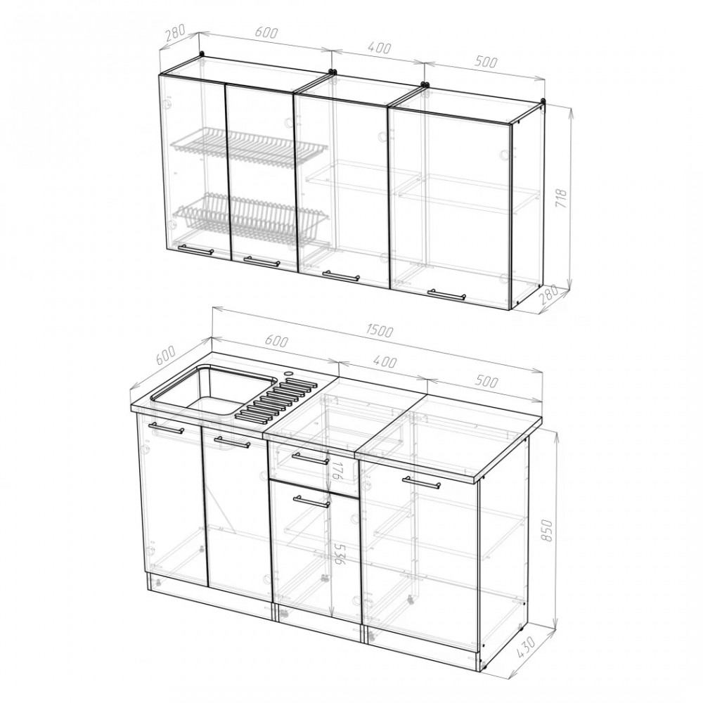 Кухонный гарнитур Инна нормал 1500 мм в Ишиме