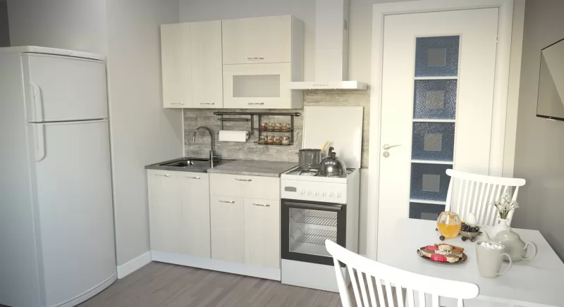 Мойки, смесители и посудосушители в комплекты гарнитуров не входят.