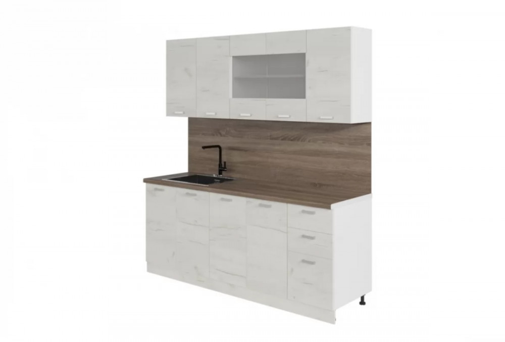 Мойка, смеситель, посудосушитель и стеновая панель в комплекты гарнитуров не входят.