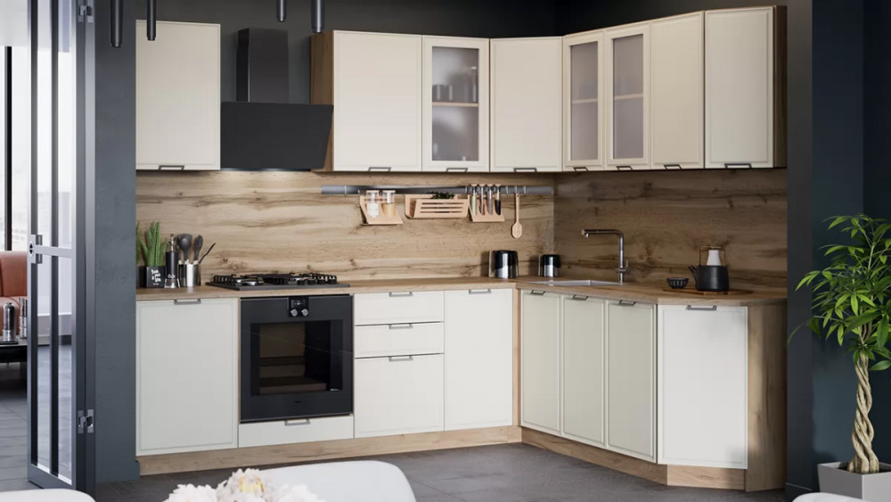 Модульная кухня «Белладжио» Дуб Крафт золотой, Софт панакота в Ишиме