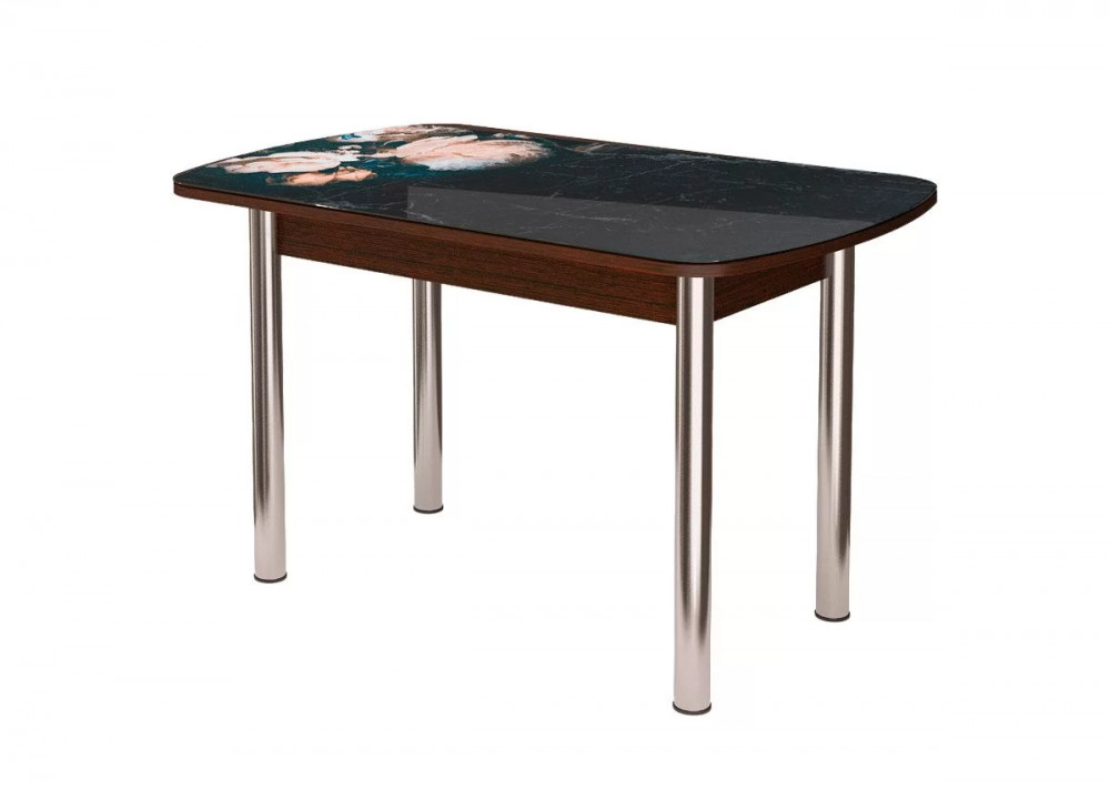 Стол Бостон, ф/п Цветы на мраморе/венге/хром брифинг в Ишиме