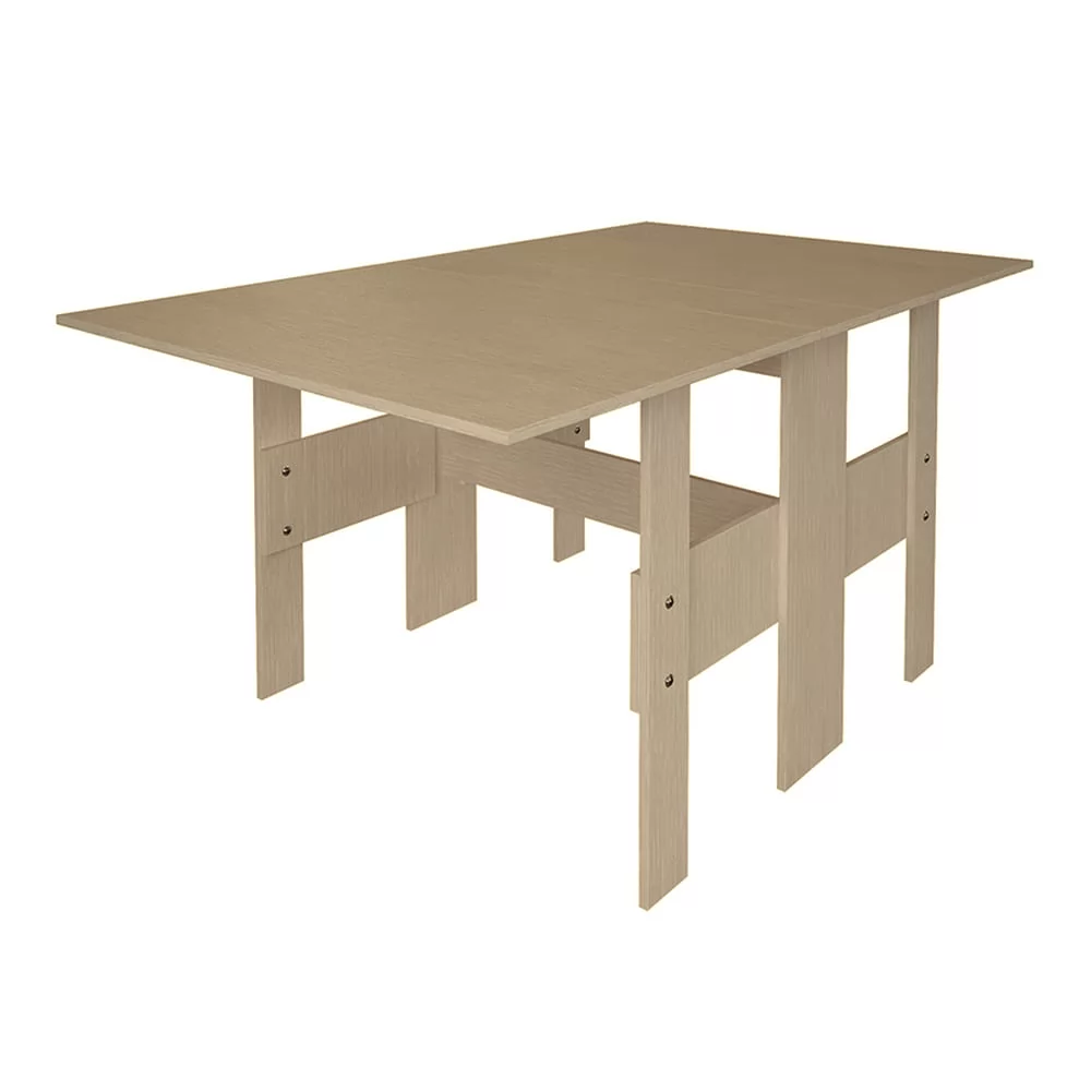 - при необходимости столешница компактной модели раскладывается на две стороны и превращается в полноценный обеденный стол, за которым поместится немало гостей, - изделие выполнено из высококачественной ЛДСП в цвете дуб сонома и прекрасно впишется в светлый интерьер.