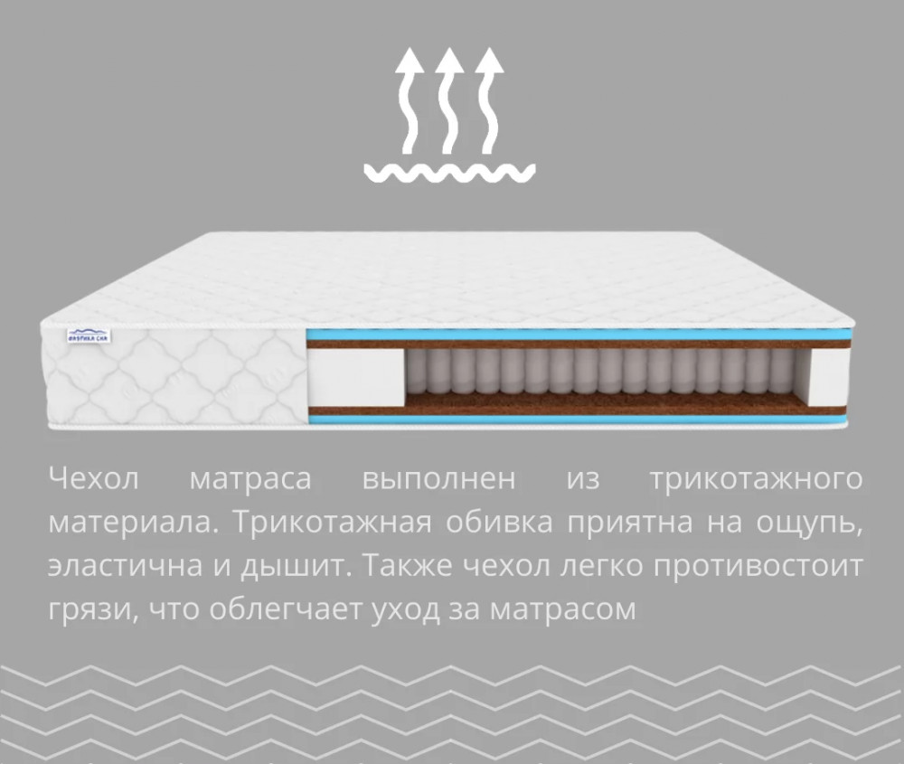 Чехол в обивке из трикотажа: Обивка легко снимается и стирается, что облегчает уход за матрасом.