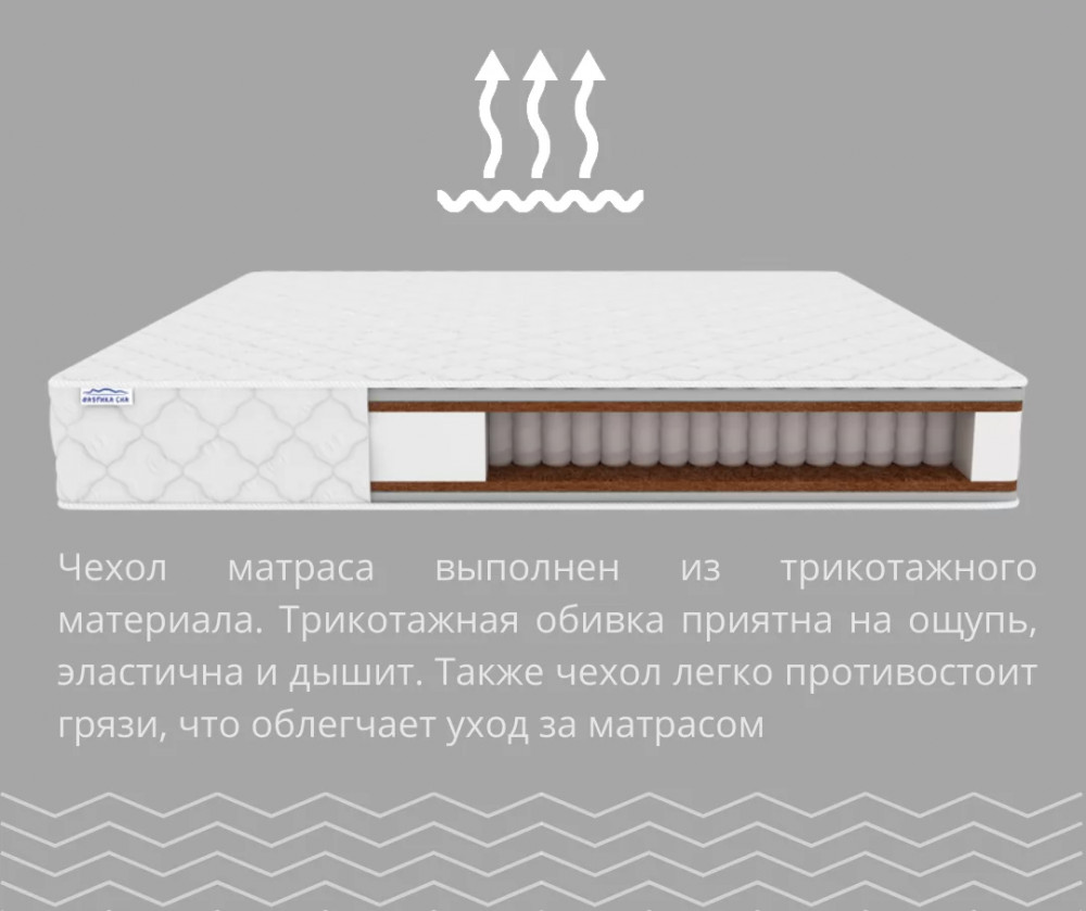 Чехол в обивке из трикотажа: Обивка легко снимается и стирается, что облегчает уход за матрасом.