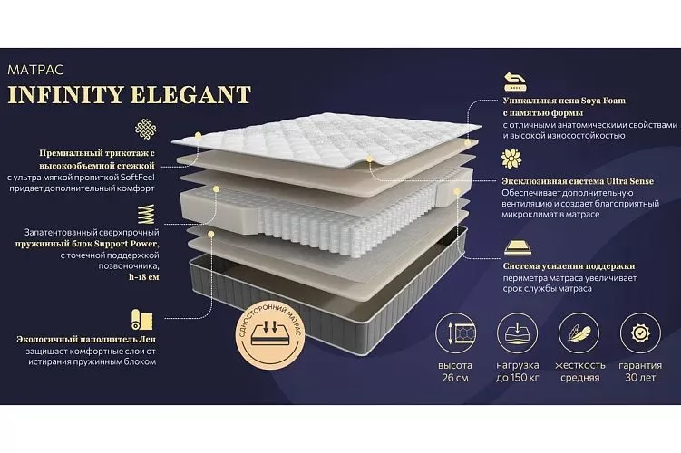 Матрас INFINITY ELEGANT 900*2000мм (Пена/лен, ср.жесткий, h 26см) в Ишиме