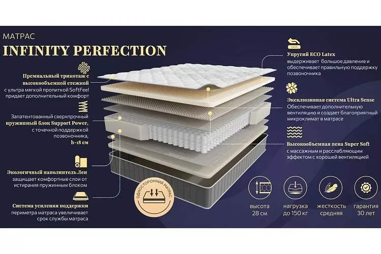 Матрас INFINITY PERFECTION 1200*2000мм (Эколатекс/пена/лен, ср.жесткости, h28см) в Ишиме