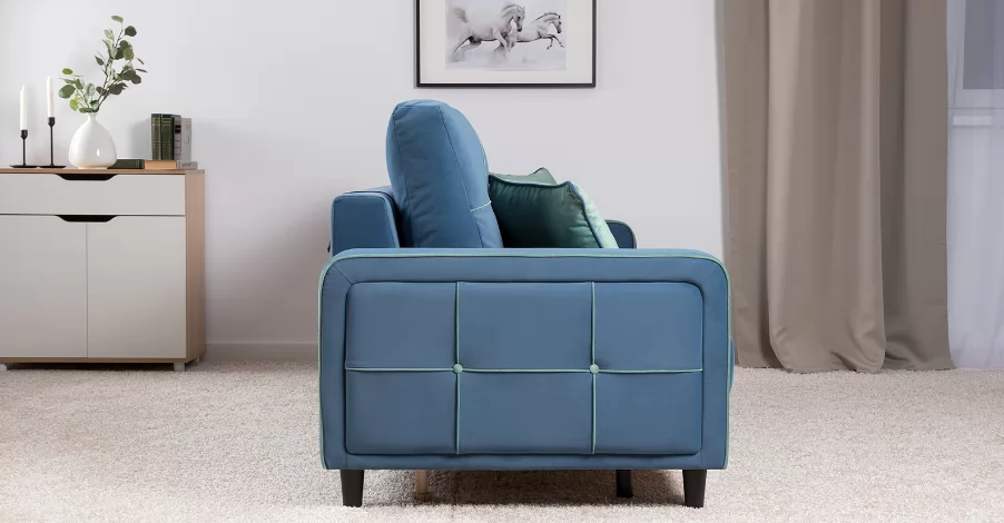 ДВПоОснование сиденья: ППУ на блоке плоских пружин "змейка"Приспинные подушки, шт:  3Съемные чехлы приспинных подушек:  естьДекоративные подушки, шт:  2Наполнитель подушек:  крошка ППУ и полиэфирное волокно «шарики»Материал опор:  лакированное деревоВысота опор (мм):  120