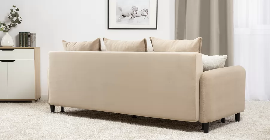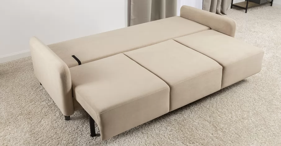 Объемные подушки обеспечивают комфортный отдых. В комплекте 5 двусторонних приспинных подушек и 2 декоративные подушки-думки в ткани букле. Надежный механизм трансформации и ровное спальное место обеспечивают полноценный сон.