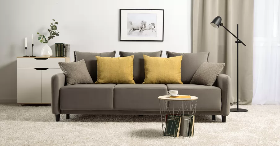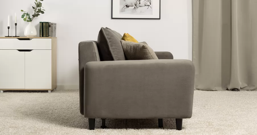 Объемные подушки обеспечивают комфортный отдых. В комплекте 5 двусторонних приспинных подушек и 2 декоративные подушки-думки в ткани букле. Надежный механизм трансформации и ровное спальное место обеспечивают полноценный сон.