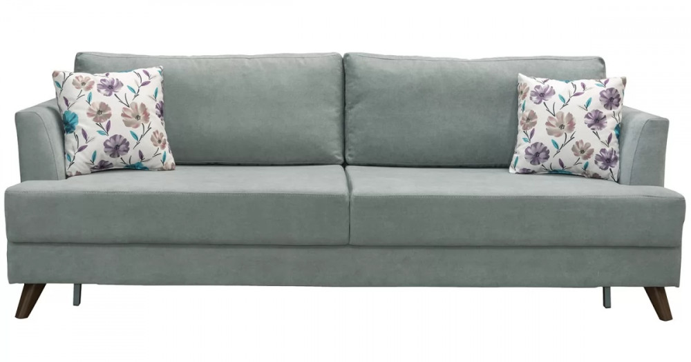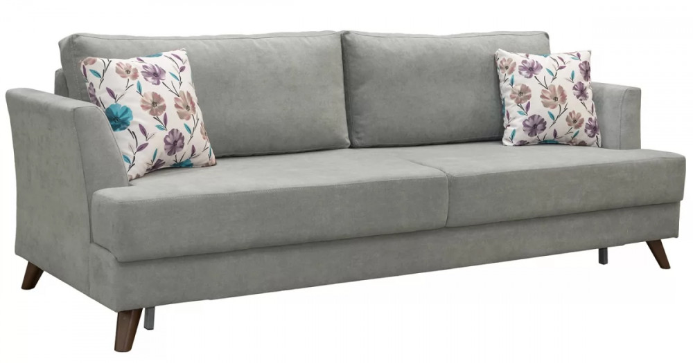 Лаконичный и элегантный диван легко впишется в любой современный интерьер. Из нескольких вариантов обивки вы легко сможете подобрать цветовое решение, подходящее именно вам. Высокие подлокотники и декоративные подушки обеспечивают комфортную посадку.