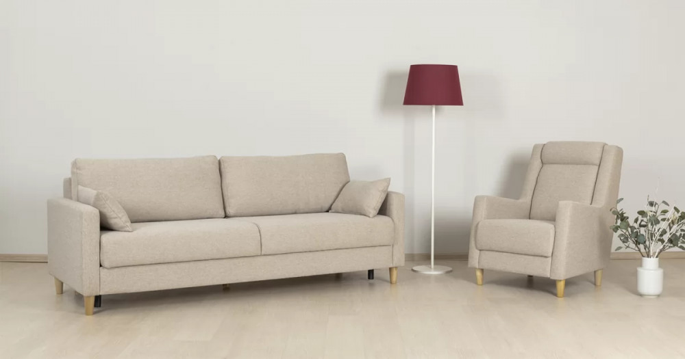 ДВПооснование матраса: ППУ на блоке плоских пружин «змейка»приспинные подушки, шт: 2декоративные подушки, шт: 2наполнитель подушек: полиэфирное волокно «шарики»материал опор: лакированное деревоцвет опор: бежевыйНазначениев гостиную