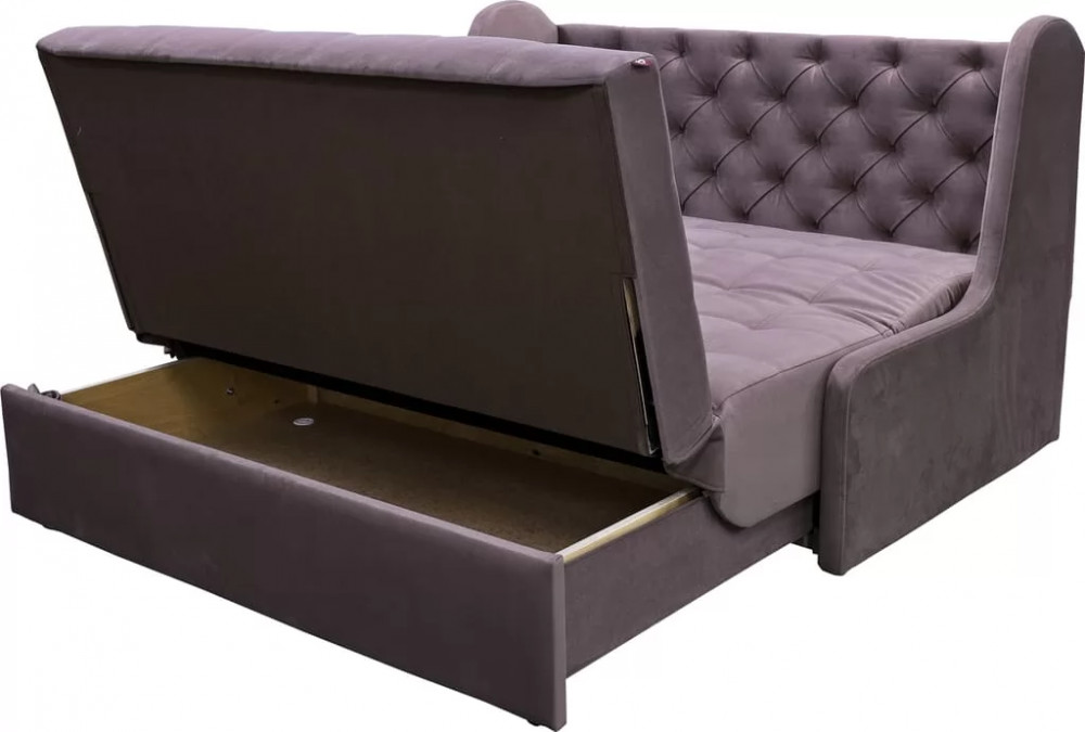 Диван "Аризона NEW" на первый взгляд весьма прост: сиденье и спинка украшены утяжками, которые предохраняют ткань от растяжения; подлокотники отсутствуют, так что посадка становится более свободной и диван занимает меньше места. Однако за бесхитростным видом скрывается нечто неожиданное: за счет встроенного механизма трансформации «Аккордеон» диван превращается в полноценную кровать с классическим высоким изголовьем. Благодаря этому "Аризона" идеально подходит для квартир малого метража и позволяет существенно сэкономить пространство.