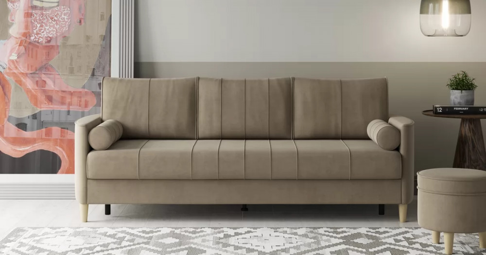 Лора Диван-кровать арт. ТД 327Габаритысложенный (Д x Г х В, мм): 2200 x 970 x 850разложенный (Д x Г х В, мм): 2200 x 1370 x 610спальное место (Д x Ш, мм): 1910 x 1370высота посадки (мм): 460глубина сиденья (мм): 560высота спинки (мм): 420высота подлкотника от сиденья (мм): 170максимально допустимая нагрузка: 80 кг на одно посадочное место, 100 кг на одно спальное местоМеханизм трансформацииЕврокнижка с механизмом раскладки «тик-так»Бельевой ящикестьс перегородкой по центру (2 отделения)размер отделения (Д x Ш, мм): 786 x 688 x 120Варианты исполнения6 артикуловсочетание тканей только как на фотоМатериалыосновная ткань: Ультра (велюр)выполняется в тканях: Ультра беж (песочный)каркас: фанера деревянный брус ДСП ДВП ЛДСП ДВПоприспинные подушки, шт: 3съемные чехлы приспинных подушек: естьдекоративные подушки, шт: 2наполнитель подушек: полиэфирное волокно «шарики»материал опор: лакированное деревоцвет опор: бежевыйвысота опор (мм): 120ДекорКант на торцах приспинных подушек, сиденья и подлокотников. Защипы на сиденье и приспинных подушках. Две декоративные подушки-валика с защипами.Назначениев гостиную в гостевую комнату в кабинетТребуется ли сборкадаУпаковкаколичество коробок, шт: 2общий вес с упаковкой, кг: первая - 14, вторая - 65,6Гарантия: 18 месяцев