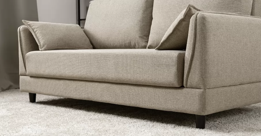 Лаконичный дизайн с деревянными ножками и узкими подлокотниками удачно дополнит не только интерьер гостиной, но и кабинета, и кухни. Кроме того, диван Макс позволяет организовать спальное место в ограниченном пространстве.