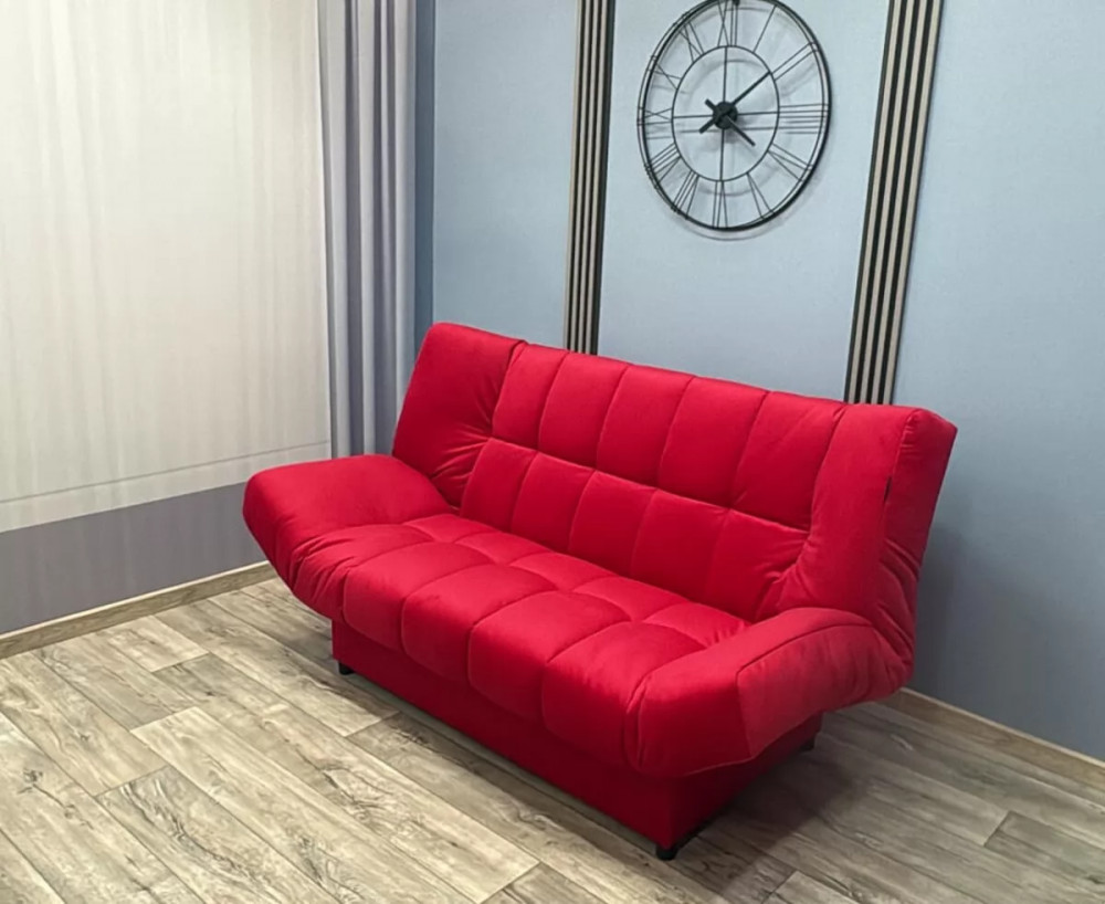 Выгодной отличительной особенностью дивана «Клик-Кляк» является возможность трансформации в три положения: для сидения, для отдыха в полу-сидящем положении и для сна. Не менее выгодной особенностью дивана является съемный чехол. Название диван получил за механизм трансформации, который издает характерный звук щелчка при его раскладывании. Внутри дивана имеется вместительный короб для хранения постельных принадлежностей.