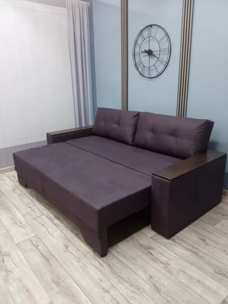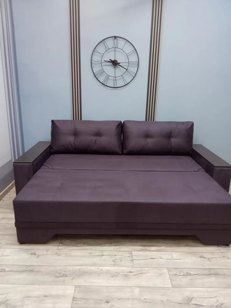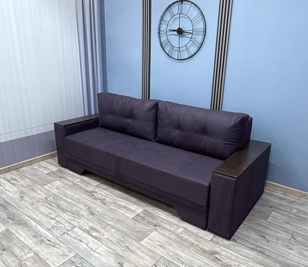 Прекрасное сочетание элегантности и изящества. Подлокотники с декоративными накладками делают его безупречным для любого интерьерного решения. Механизм трансформации «Пантограф» (тик-так) позволяет без особых усилий формировать ровное спальное место. Так же имеется вместительный короб для постельных принадлежностей.