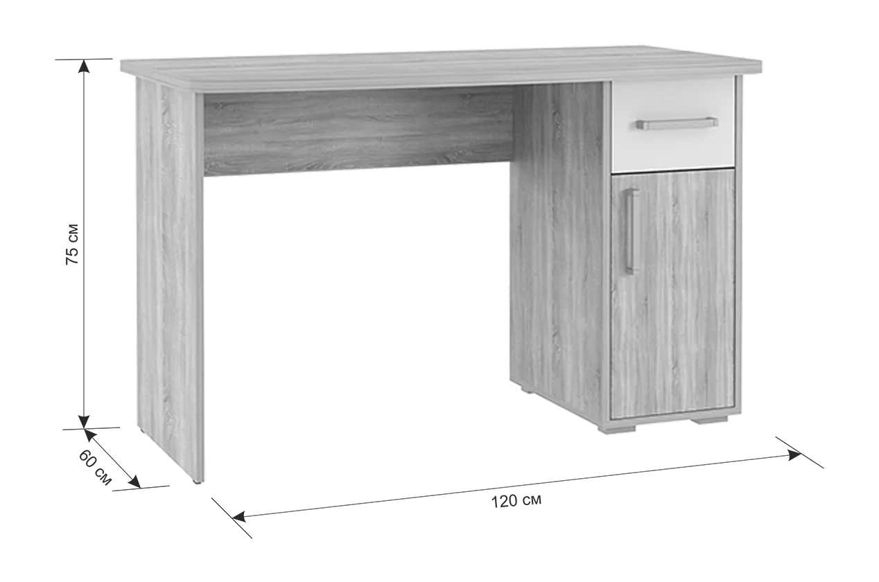 Стол компьютерный 1200 Лайт-1 дуб сонома/белый в Ишиме