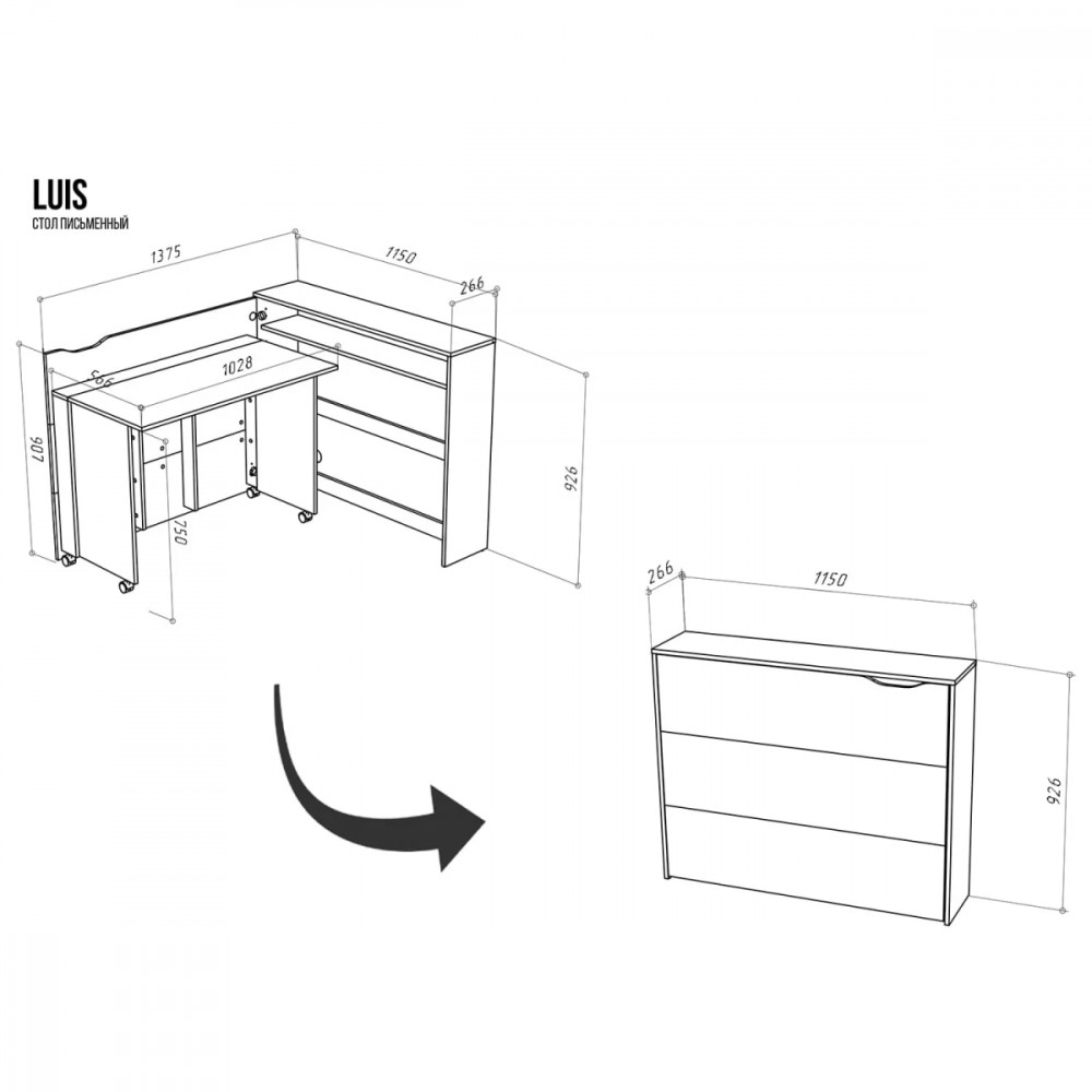 Стол LUIS — это очень функциональный раскладной письменный стол, который позволяет эффективно использовать пространство даже самой небольшой комнаты.