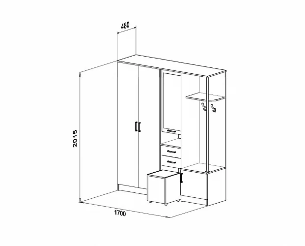 *Размеры (Ш*Г*В), мм:1700*480*2015 мм