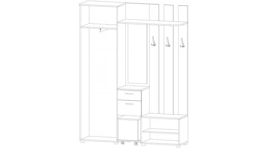 Габариты 1577(Ш) х 380(Г) х 2080(В) мм.