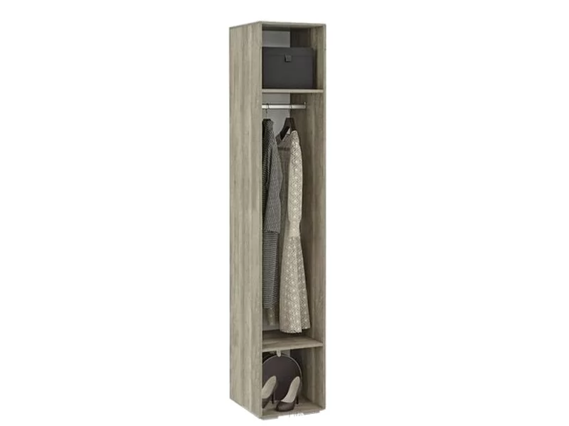 - внутренне наполнение модели состоит из отделения для одежды на вешалках и двух полок, - темный фасад дверцы и корпус в цвете дуб каньон, позволит шкафу вписаться в любую комнату и украсить современный интерьер
