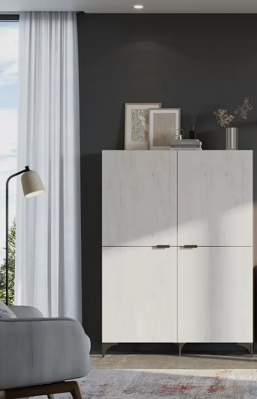 Новые современные цвета: черный ясень - глубокий серый, легкий и одновременно динамичный цвет в сочетании с санторини белым - цвет с древесными линиями, создающими гармоничный контраст. Визуальная легкость, эстетика графики, элегантная окантовка с четкими формами, баланс теплых и холодных оттенков легли в основу дизайна новых модулей.