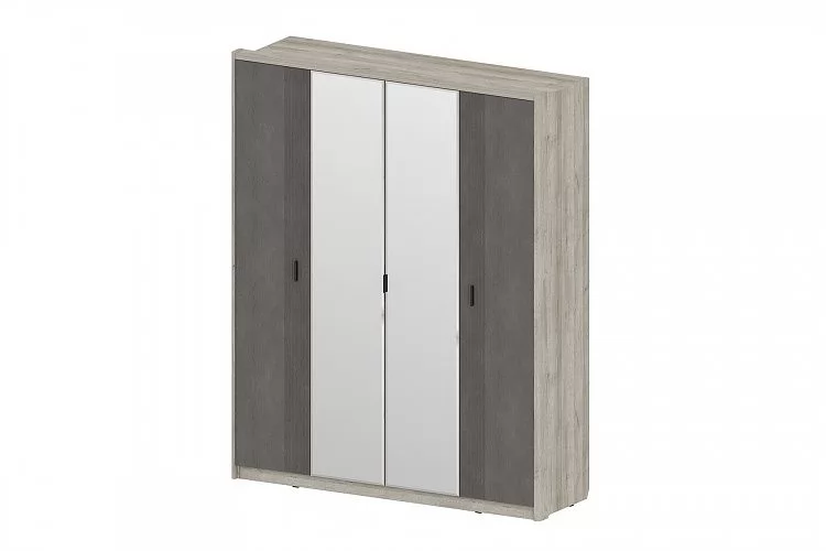 Фасады шкафов декорированы зеркалами с обработкой фацет. Высота шкафов составляет 2330 мм, а полезная глубина 568 мм. Шкафы изготовлены из материала ЛДСП 16 мм, задняя стенка из ХДФ. Фасады представлены как в однотонном так и в комбинированном варианте: створки из МДФ 16 мм под пленкой ПВХ.