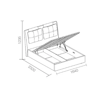 Подъемный механизм легок в управлении, а вместительный короб внутри кровати подойдет для хранения подушек, белья и других вещей.